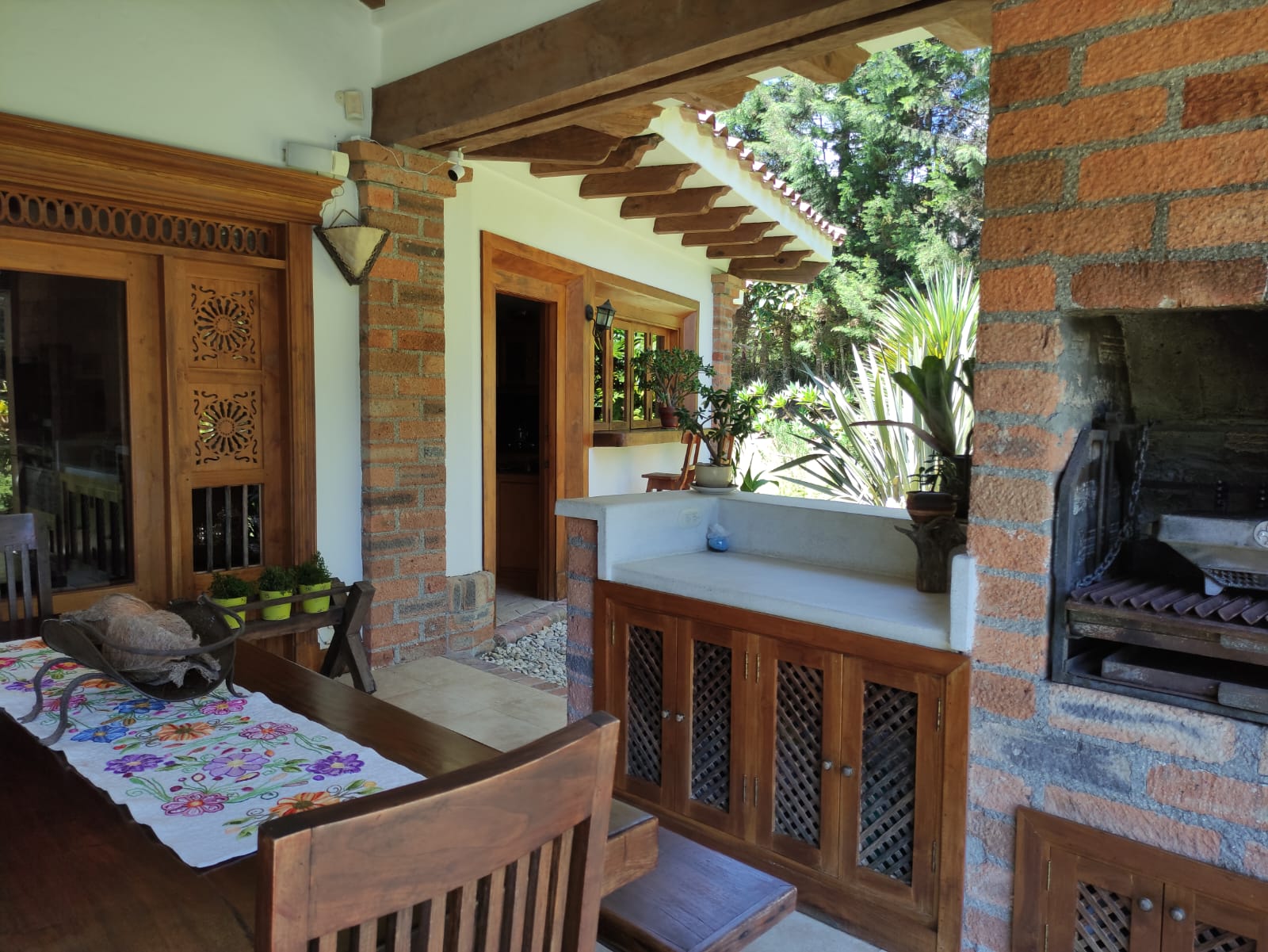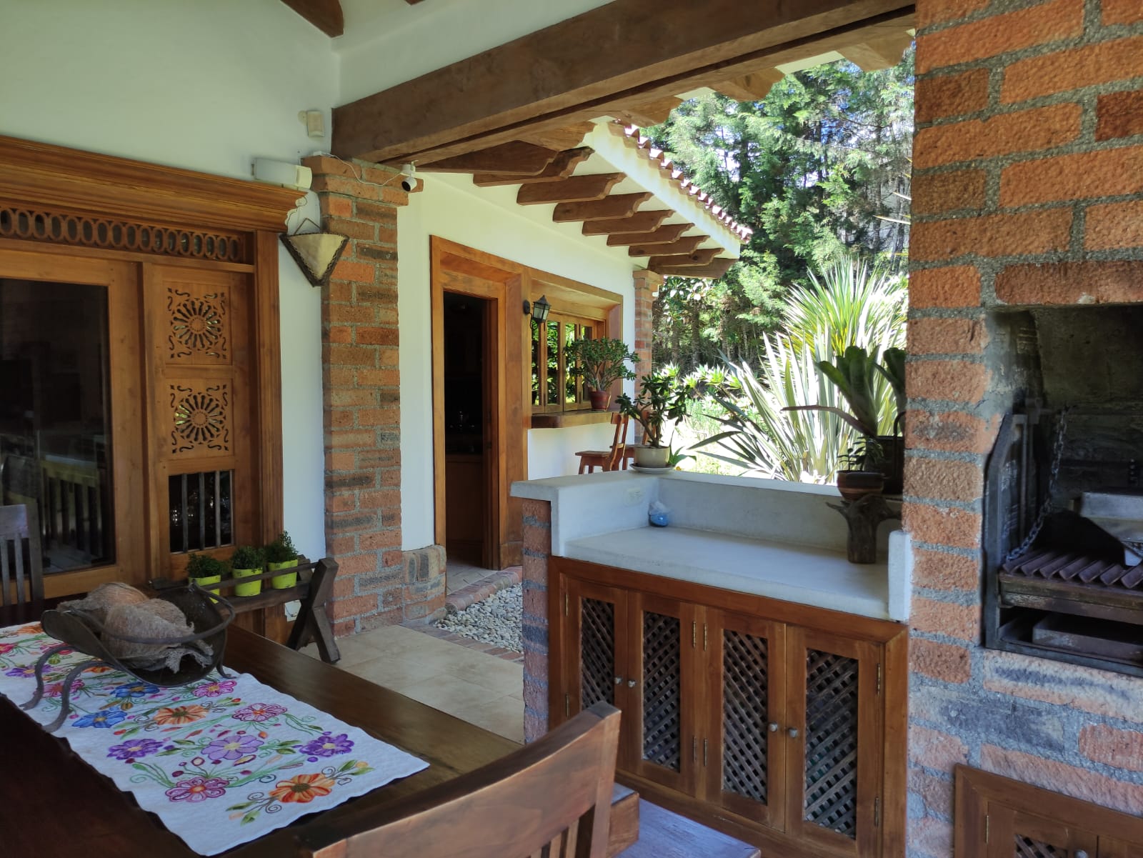 3 Alcobas mas Alcoba de Servicio, 4 Baños mas Baño de Servicio, Cocina Integral, Estudio, Doble Salón Social, con BBQ Para Asados, Comedor, Deck en Medio de los Arboles y la Naturaleza para Asados y Reuniones, 3 Chimeneas, Cuarto Útil Grande, Zona de Ropas, Parqueadero Cubierto para 2 Vehículos.
