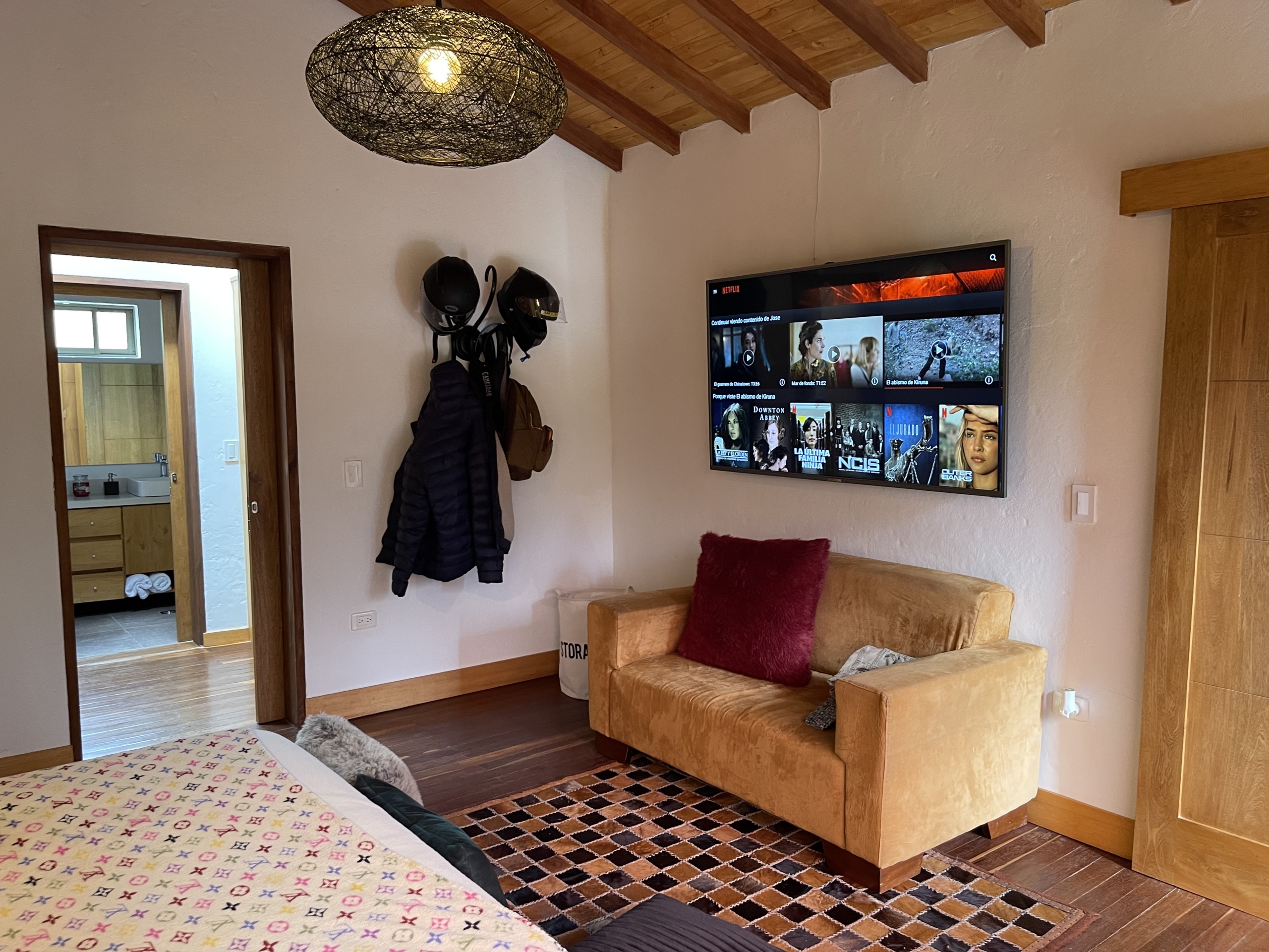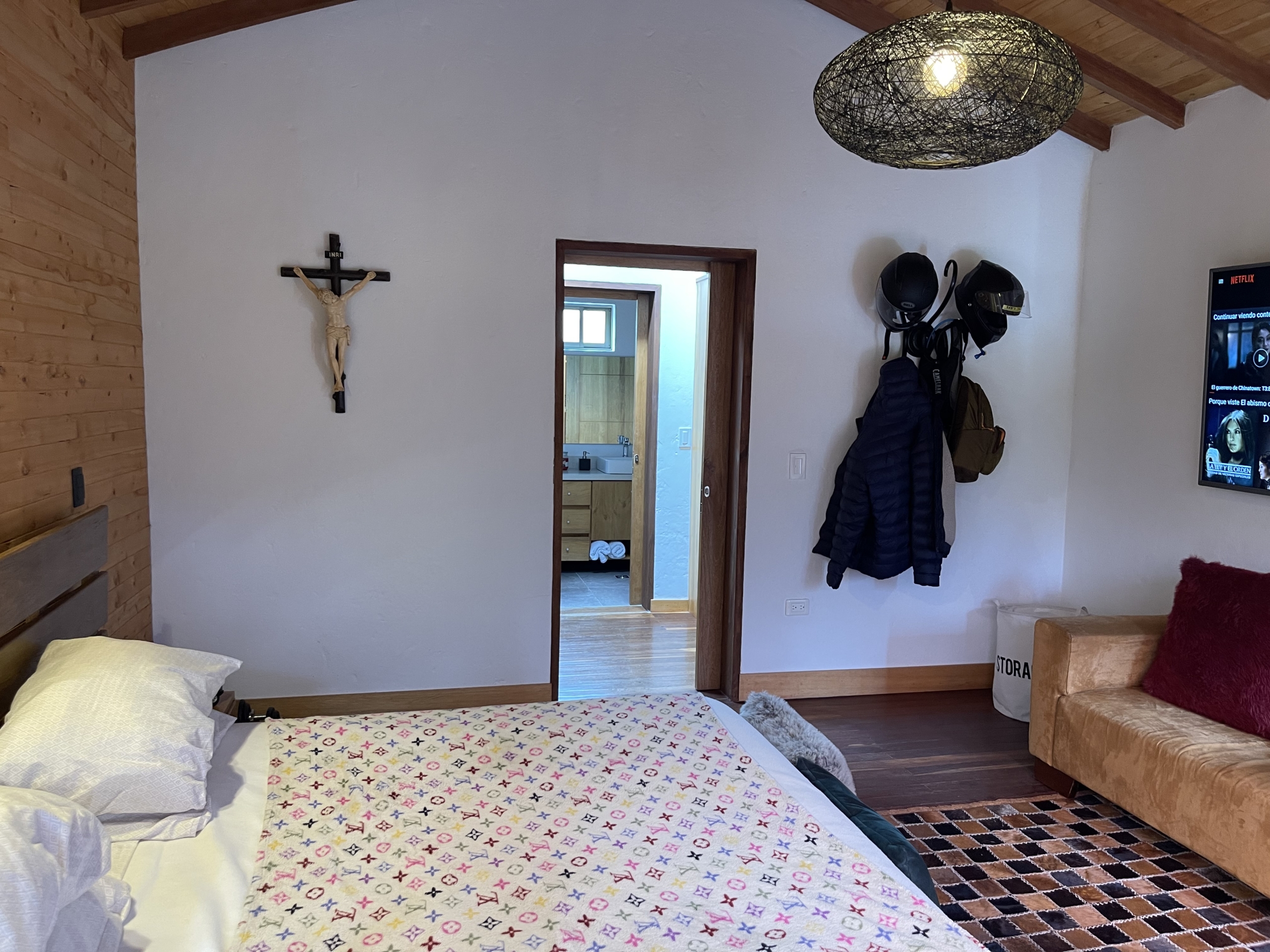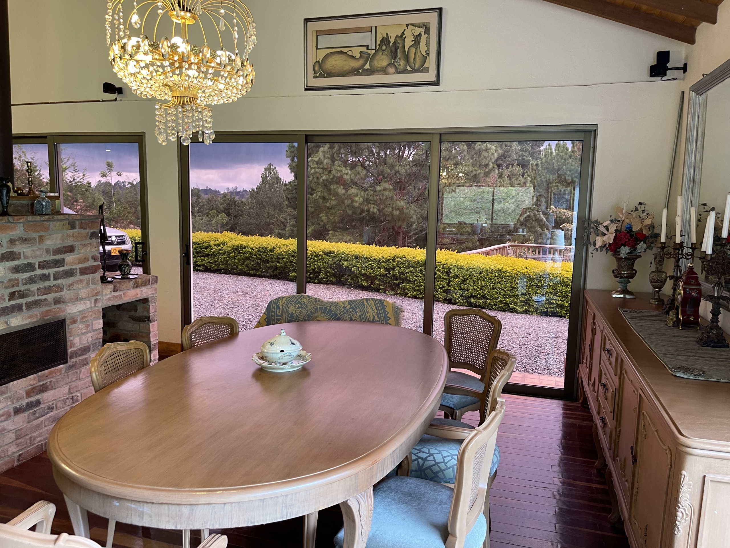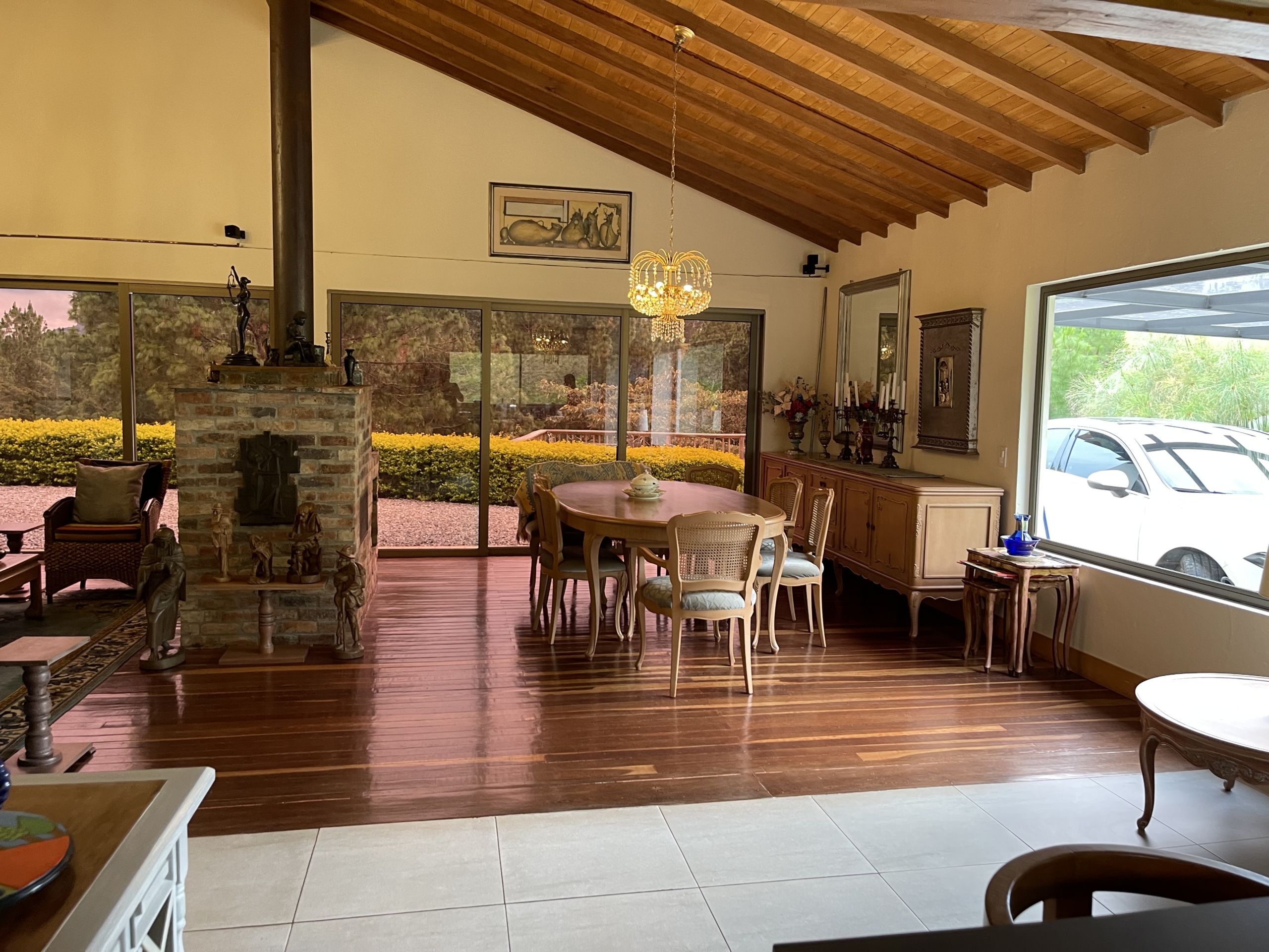 4 Alcobas mas Alcoba de Servicio 5 Baños mas baño de Servicio, Sala, Comedor con Chimenea, Cocina Integral Abierta, Estar, Jacuzzi, Deck, Zona de Ropas, Parqueadero para 2 Vehiculos, Cuarto Útil.
