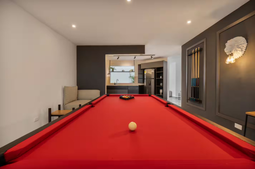 . 5 Alcobas 5.5 Baños Sala, Comedor, Chimenea, Cocina Integral, Terraza, Billar, Jacuzzi, Parqueadero para 3 Vehículos. Casa con Licencia para Rentas Cortas Diarias, Casa Completamente Dotada, se entrega completamente Amoblada, en Zona Muy Campestre. Casa en Unidad de 9 Casas todas para Renta Cortas Diarias, ubicada a 1 cuadra del Centro Comercial Ámsterdam, a 4 Cuadras del Tesoro, a 3 cuadras del Mall del Este, a pocas Cuadras de Provenza y del Parque Lleras. Área: 300 Metros Cuadrados Informes